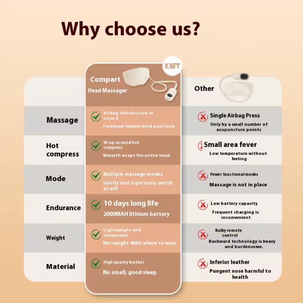 Say goodbye to headaches and eye strain with our head massager, offering targeted airbag compression and soothing heat