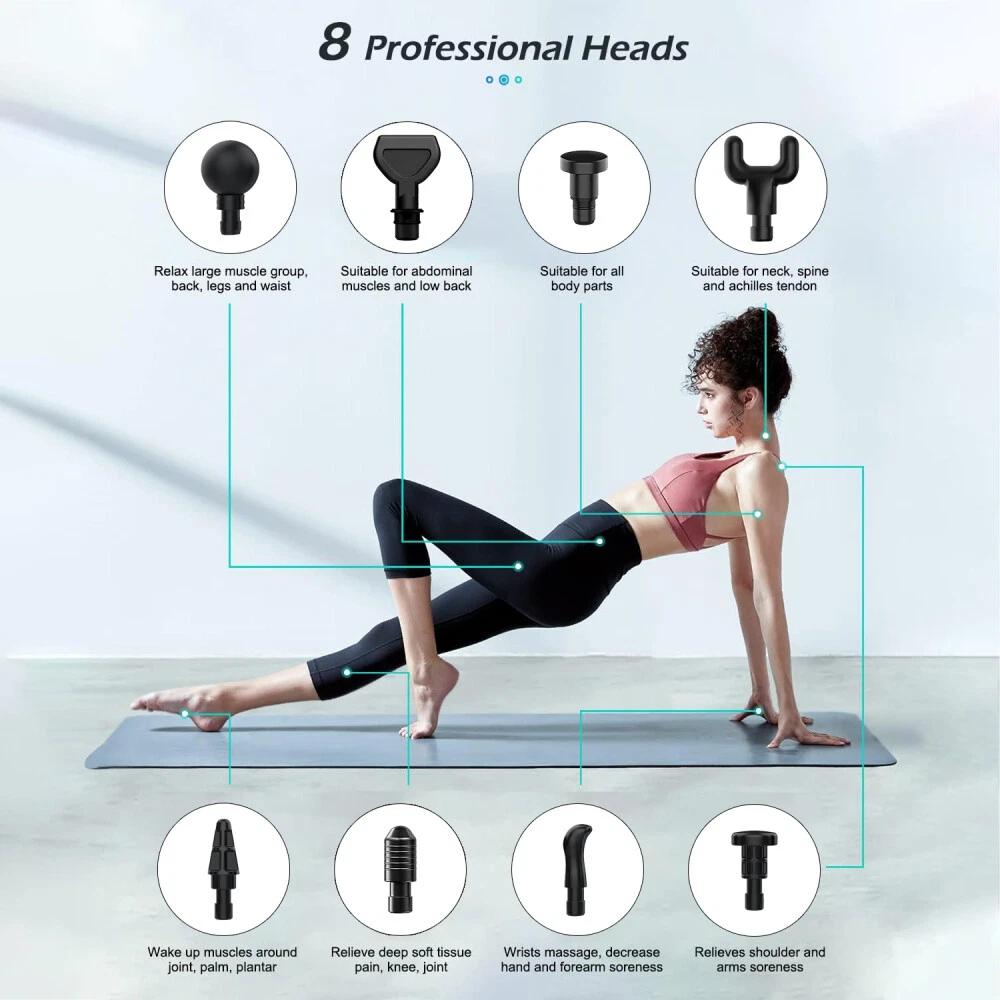 Comes with 8 specialized attachments designed for targeted muscle treatment. From large muscle groups to delicate areas like the spine or joints, each head ensures optimal contact and pressure for effective, personalized relief.