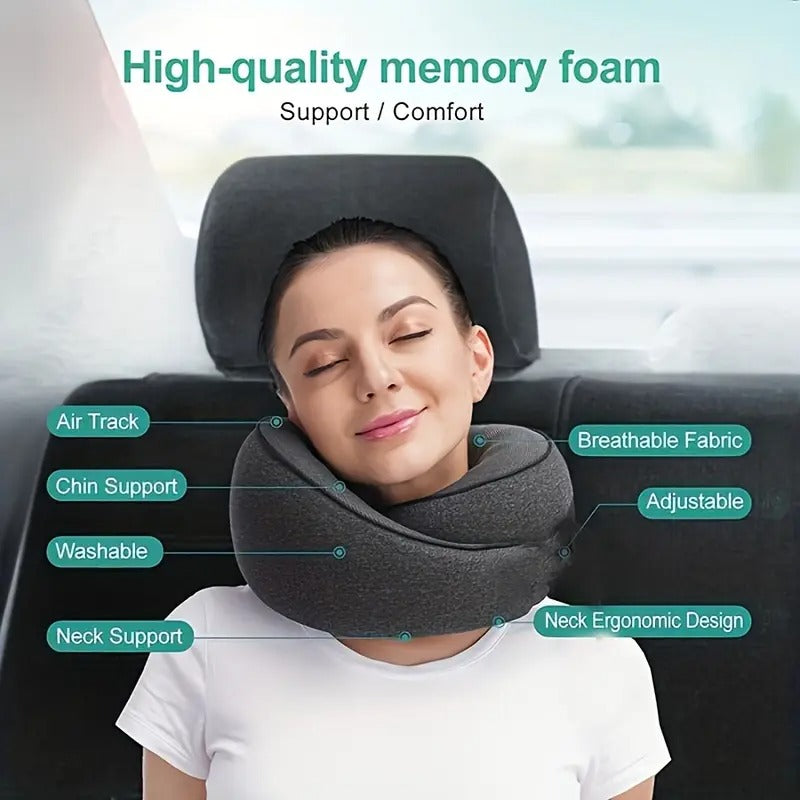 This pillow wraps around your neck and chin, offering full support during long trips. The 360° design helps prevent head bobbing and neck strain, ensuring you stay comfortable no matter how long the journey.