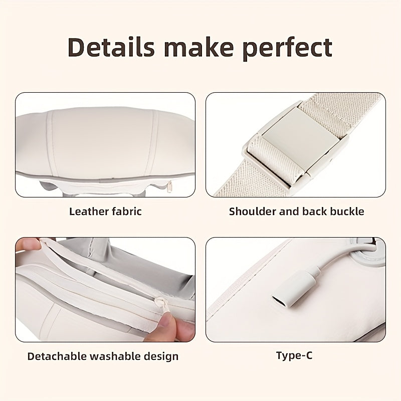 This massager is designed to cover muscles prone to fatigue and tension, especially the trapezius and deltoid muscles, helping to relieve soreness and stiffness in the neck and shoulders.